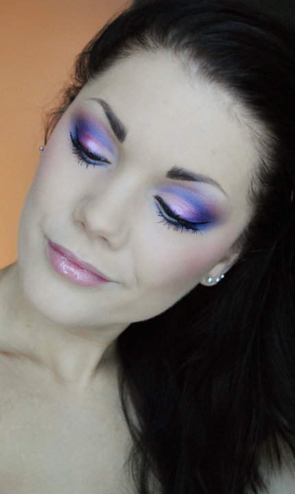 | Olhos bem marcado de azul e preto e boca rosa!! *--* |